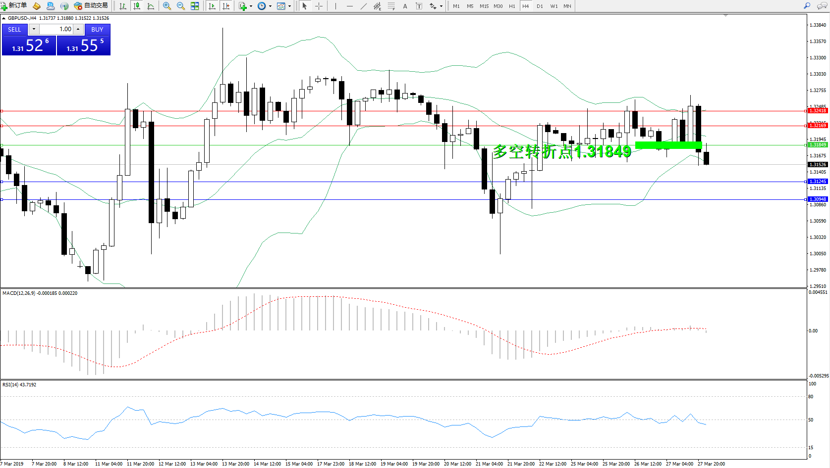 交易策略:1.31849下方看跌,目标1.31245、1.30948