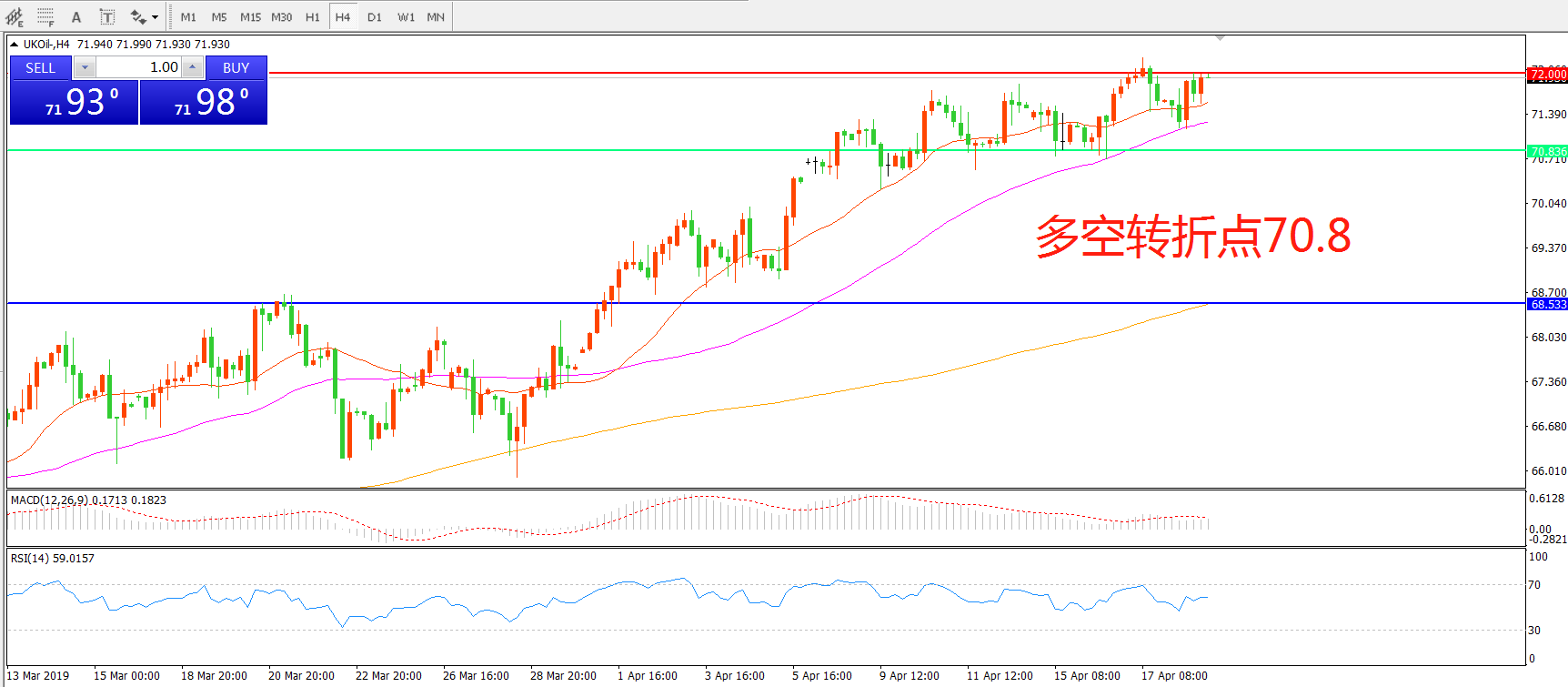 多空转折点:70.00