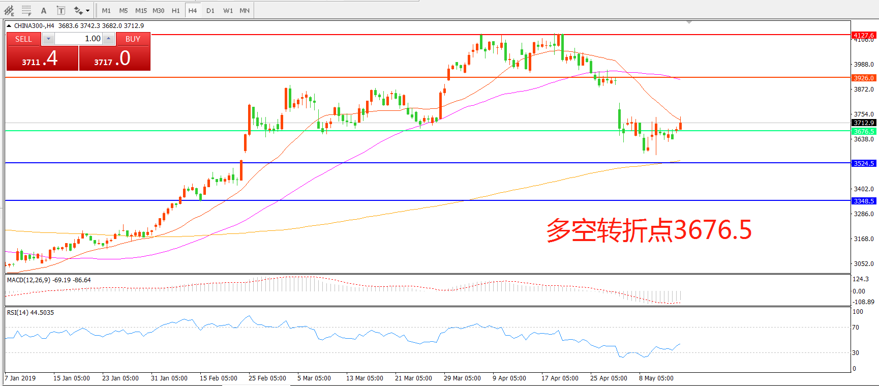 4小时图看,沪深300指数在连续下行后企稳,整体维持在3676.5附近小幅震荡200均线成为短线支撑,MACD绿柱缩短,RSI指标拐头向上,日内震荡上行概率较大