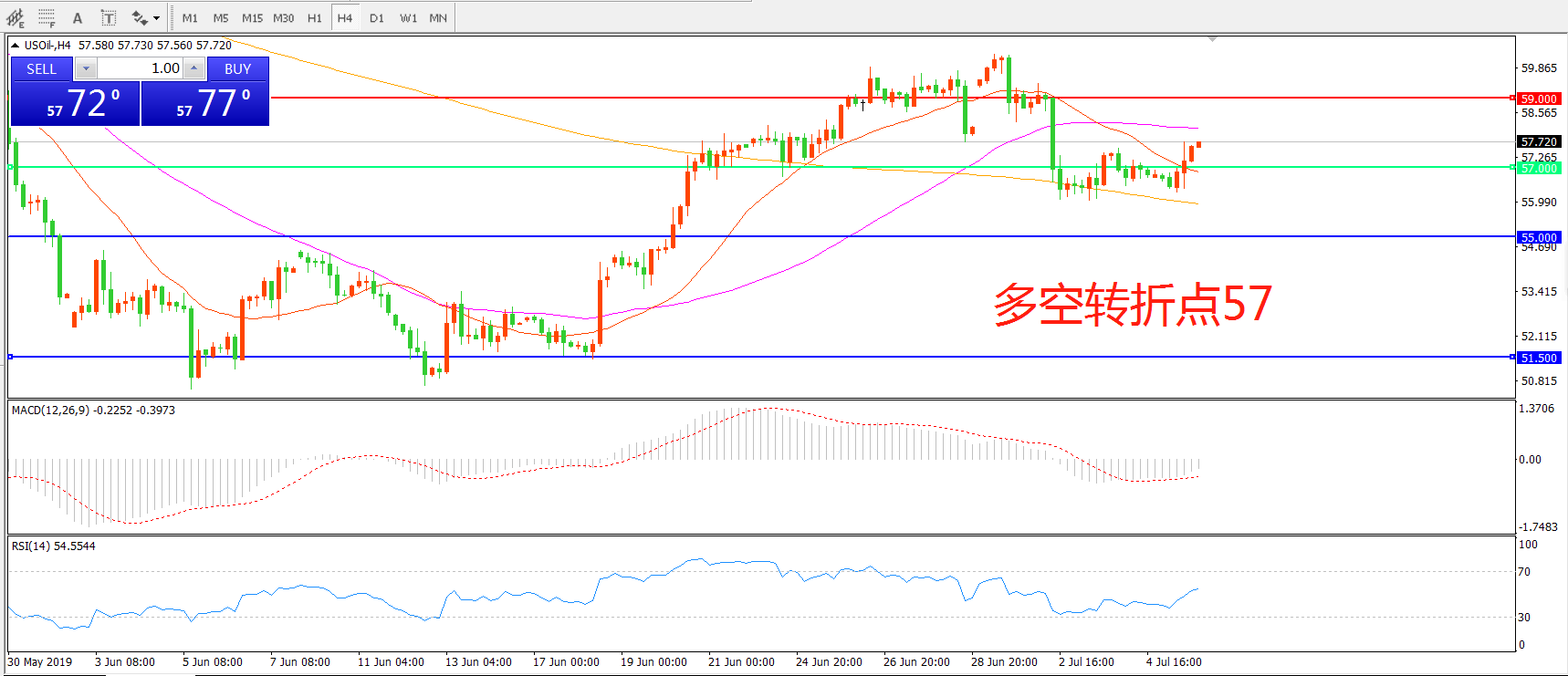 交易策略:在57.00  之上看涨,目标59.00    61.00