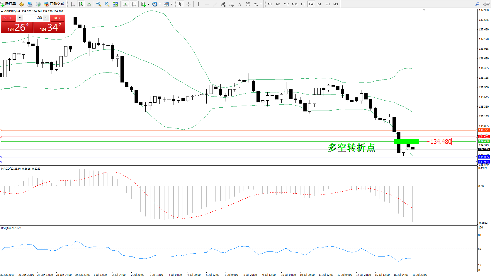 交易策略:134.480下方看跌,目标134.065133.934
