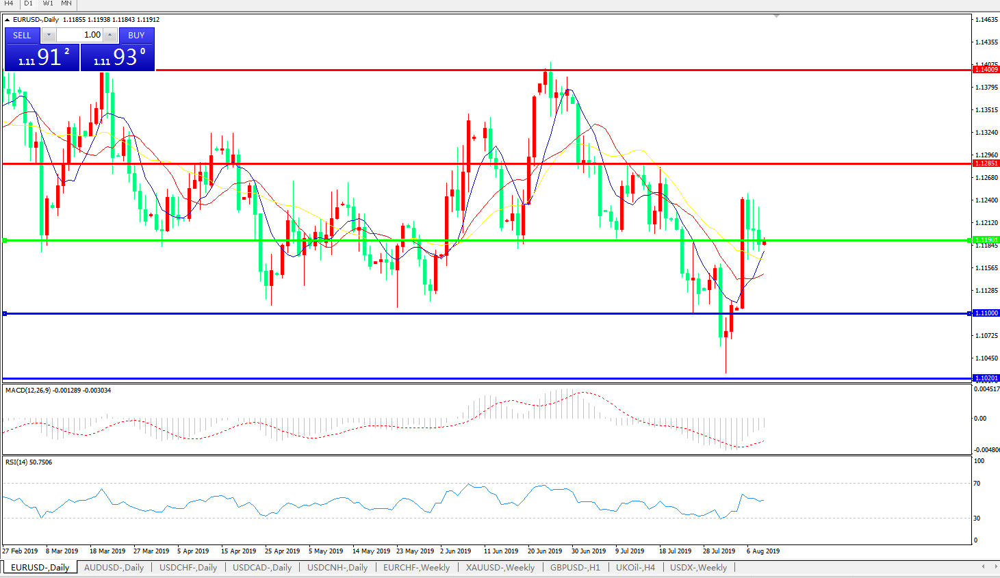 欧元兑美元EURUSD   日线图: