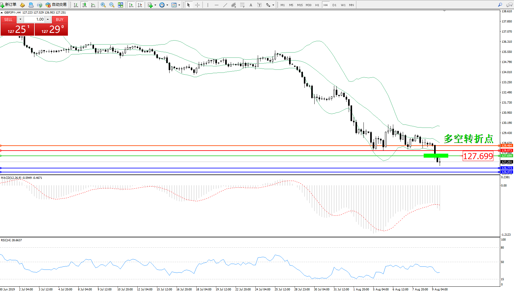 技术点评:空头下行态势良好,布林带指标呈张口态势,延续下轨弱势下行中,空头短暂得以支撑后再次下挫,MACD指标空头区域持续下行,RSI指标空头区域弱势下探中;