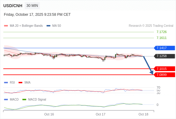 备选策略: 如突破 7.1417 ,USD/CNH 目标方向为 7.1611 和 7.1726 。