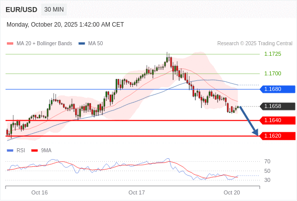 在 1.1680 之下,看跌,目标价位为 1.1640 ,然后为 1.1620 。