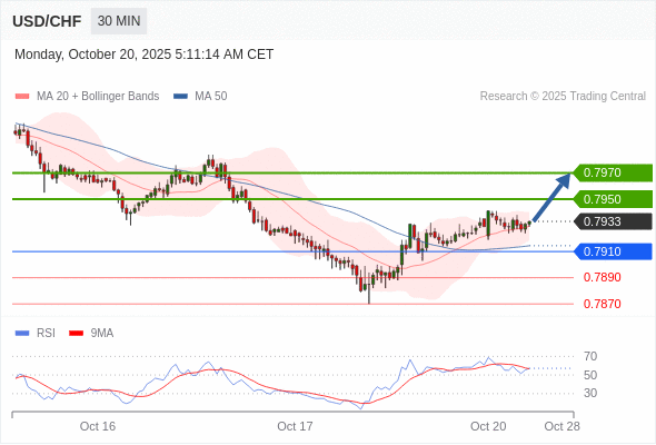 在 0.7910 之上,看涨,目标价位为 0.7950 ,然后为 0.7970 。