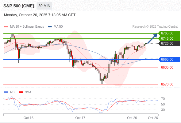 在 6665.00 之上,看涨,目标价位为 6745.00 ,然后为 6765.00 。
