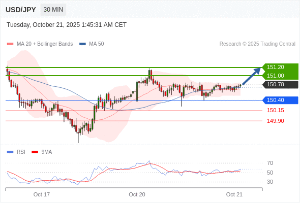在 150.40 之上,看涨,目标价位为 151.00 ,然后为 151.20 。