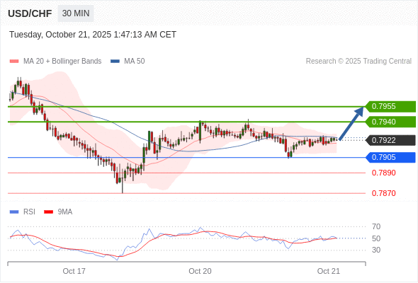 在 0.7905 之上,看涨,目标价位为 0.7940 ,然后为 0.7955 。