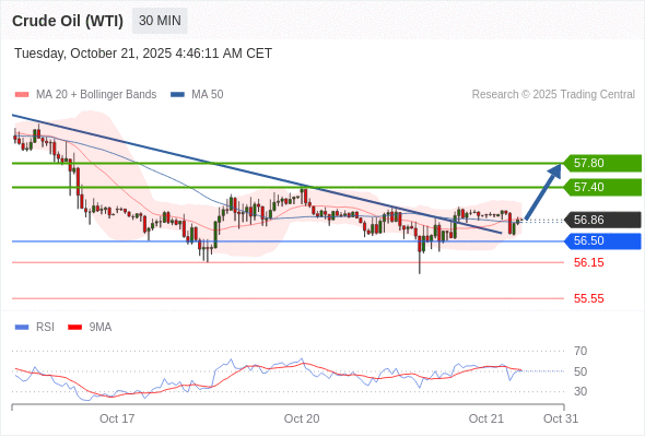 在 56.50 之上,看涨,目标价位为 57.40 ,然后为 57.80 。