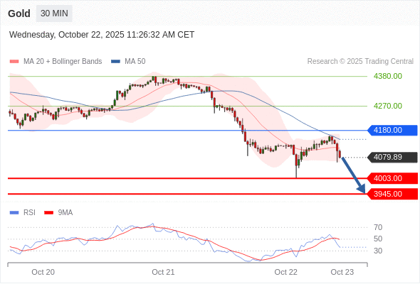 交易策略: 在 4180.00 之下,看跌,目标价位为 4003.00 ,然后为 3945.00 。