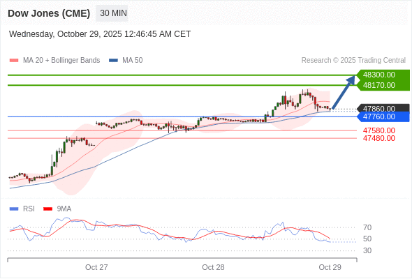 在 47760.00 之上,看涨,目标价位为 48170.00 ,然后为 48300.00 。