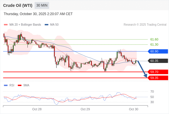 交易策略: 在 60.90 之下,看跌,目标价位为 59.70 ,然后为 59.35 。