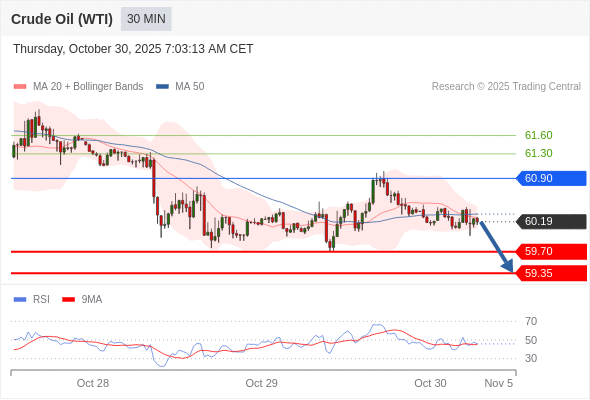 在 60.90 之下,看跌,目标价位为 59.70 ,然后为 59.35 。