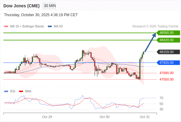 在 47920.00 之上,看涨,目标价位为 48420.00 ,然后为 48580.00 。