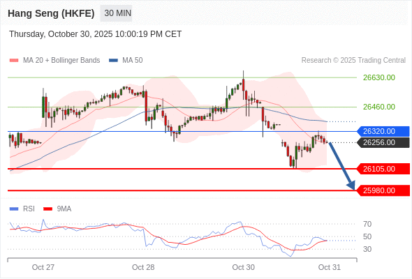 在 26320.00 之下,看跌,目标价位为 26105.00 ,然后为 25980.00 。
