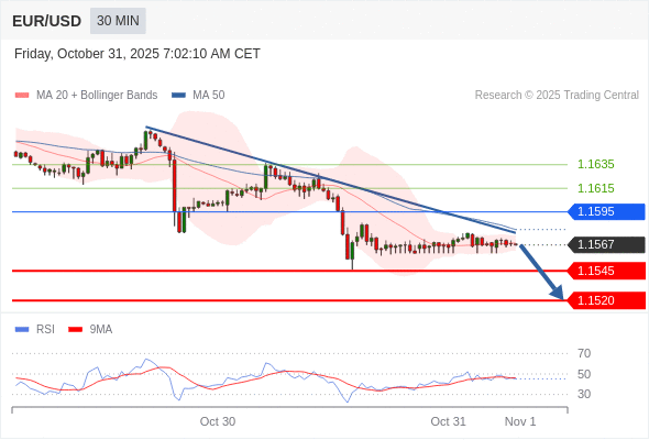 在 1.1595 之下,看跌,目标价位为 1.1545 ,然后为 1.1520 。