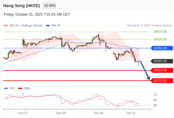 在 26350.00 之下,看跌,目标价位为 25910.00 ,然后为 25710.00 。