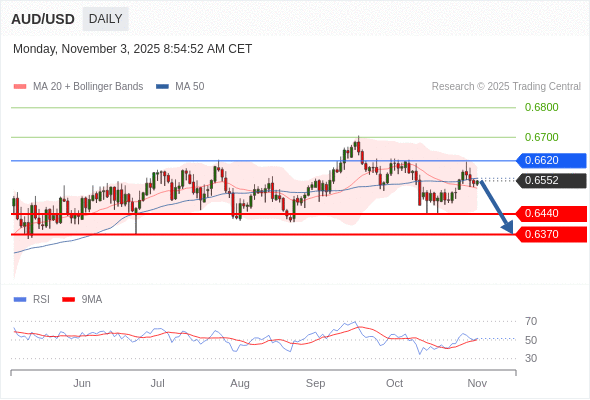 澳元/美元 短线: 短期关键阻力位在0.6620。