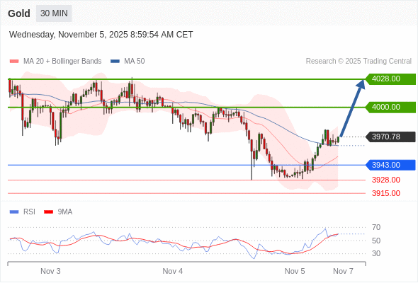 黄金现货 当日内: 目标位为4000.00。