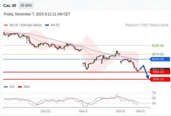 Cac 40 当日内: 期待7950.00。