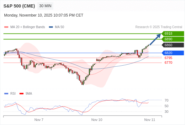 在 6820 之上,看涨,目标价位为 6890 ,然后为 6918 。