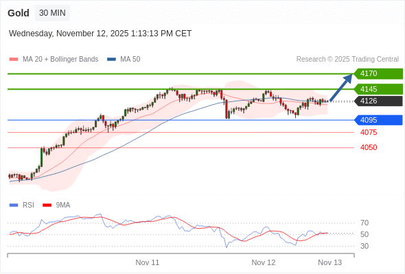 在 4145 之下,看跌,目标价位为 4095 ,然后为 4075 。