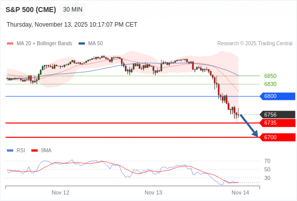 在 6800 之下,看跌,目标价位为 6735 ,然后为 6700 。