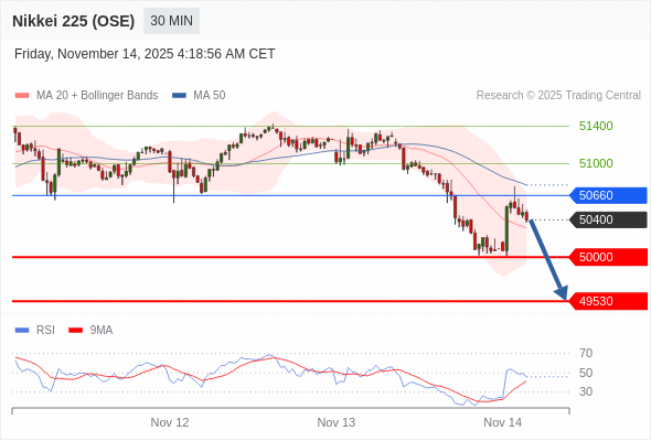 日经225股指期货 (OSE) 当日内: 短期关键阻力位在50660。