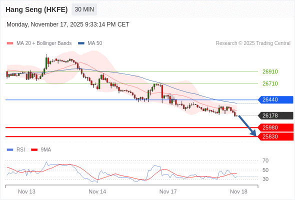 在 26440 之下,看跌,目标价位为 25980 ,然后为 25830 。