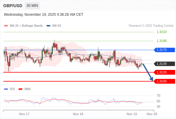 交易策略: 在 1.3170 之下,看跌,目标价位为 1.3120 ,然后为 1.3100 。