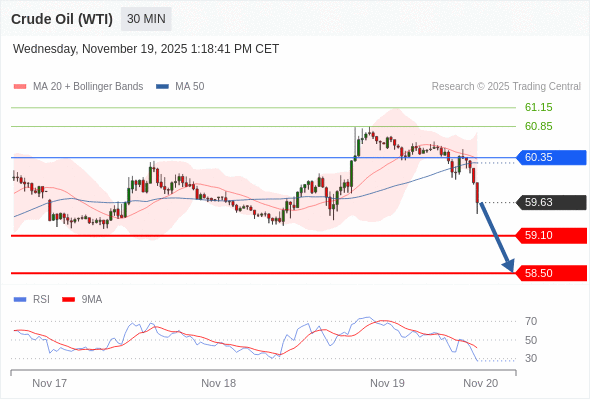 在 60.35 之下,看跌,目标价位为 59.10 ,然后为 58.50 。