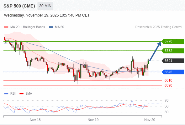 在 6645 之上,看涨,目标价位为 6732 ,然后为 6770 。