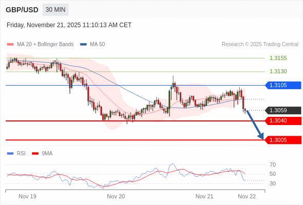 交易策略: 在 1.3105 之下,看跌,目标价位为 1.3040 ,然后为 1.3005 。