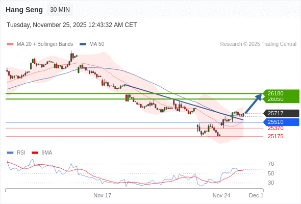 在 25510 之上,看涨,目标价位为 26050 ,然后为 26180 。