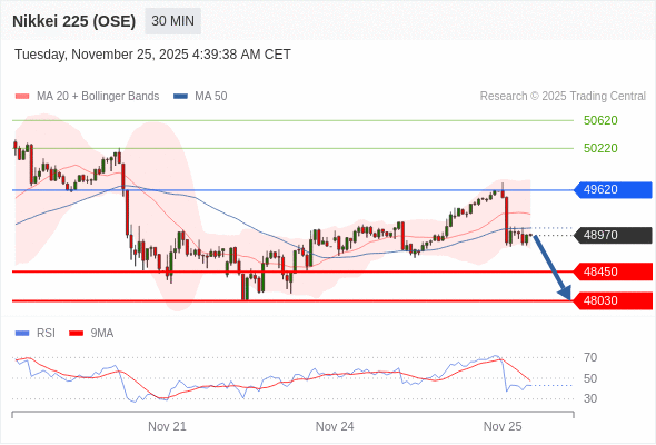 交易策略: 在 49620 之下,看跌,目标价位为 48450 ,然后为 48030 。