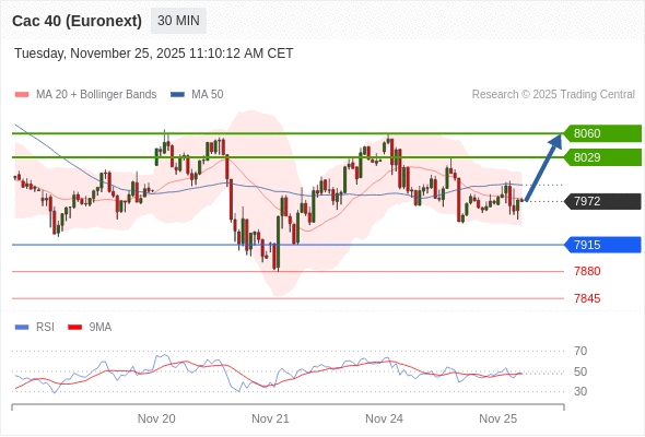 在 7915 之上,看涨,目标价位为 8029 ,然后为 8060 。