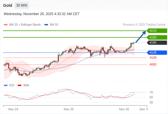 在 4128 之上,看涨,目标价位为 4185 ,然后为 4210 。