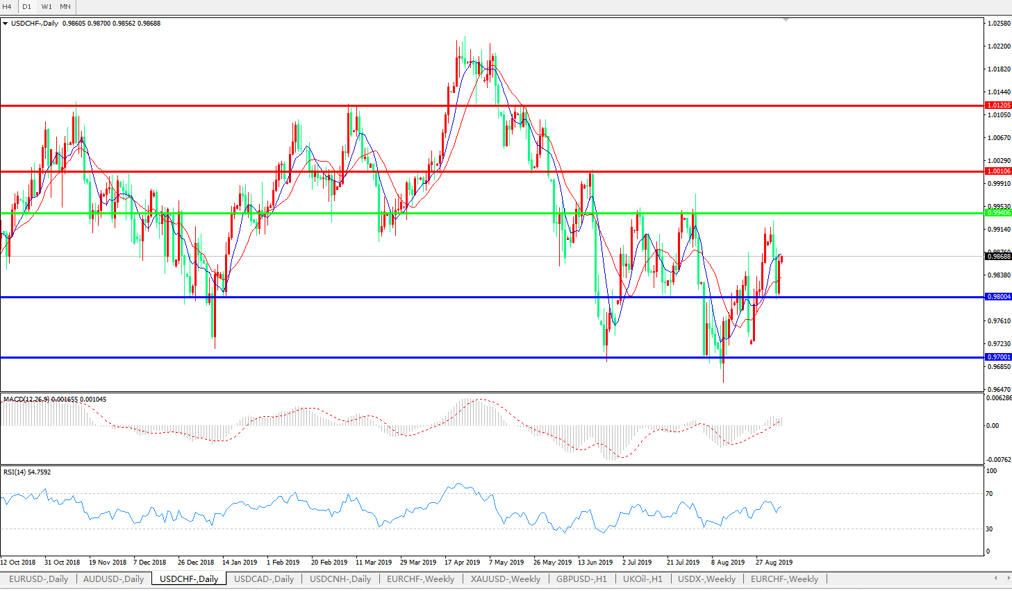 美元瑞郎USDCHF   日线图: