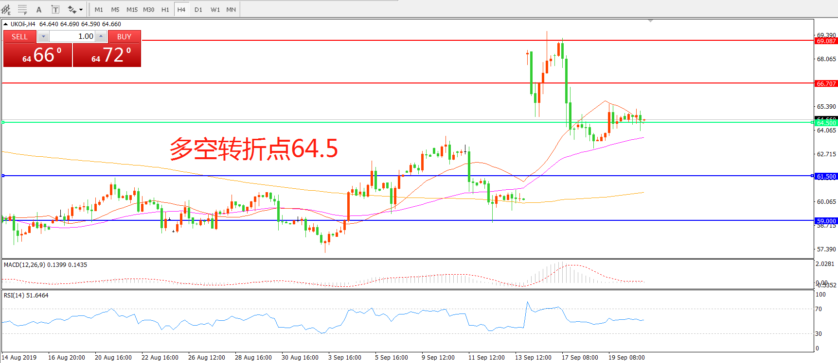 4小时图看,油价以55周期均线为支撑窄幅震荡,整体波幅不大,均线系统逐渐走平,MACD红柱减少,RSI指标走平,日内延续震荡概率较大。