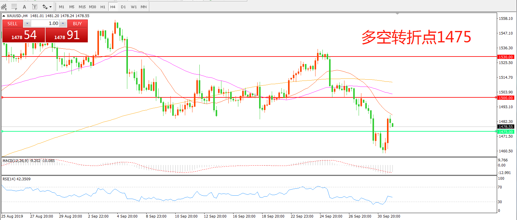 周二(10月1日),美国方面公布了9月ISM制造业PMI数据,结果该数据表现远差于预期,美国ISM制造业意外大幅疲弱短线推升了金价,现货金价自日低大幅反弹回升,暂时摆脱了自上周以来的下跌势头,最终收报1481.30美元/盎司。周一发布的民调结果显示,过去一周支持弹劾特朗普的美国民众占比上升了8个百分点,达到45%,美国政治风险是金价潜在支撑。