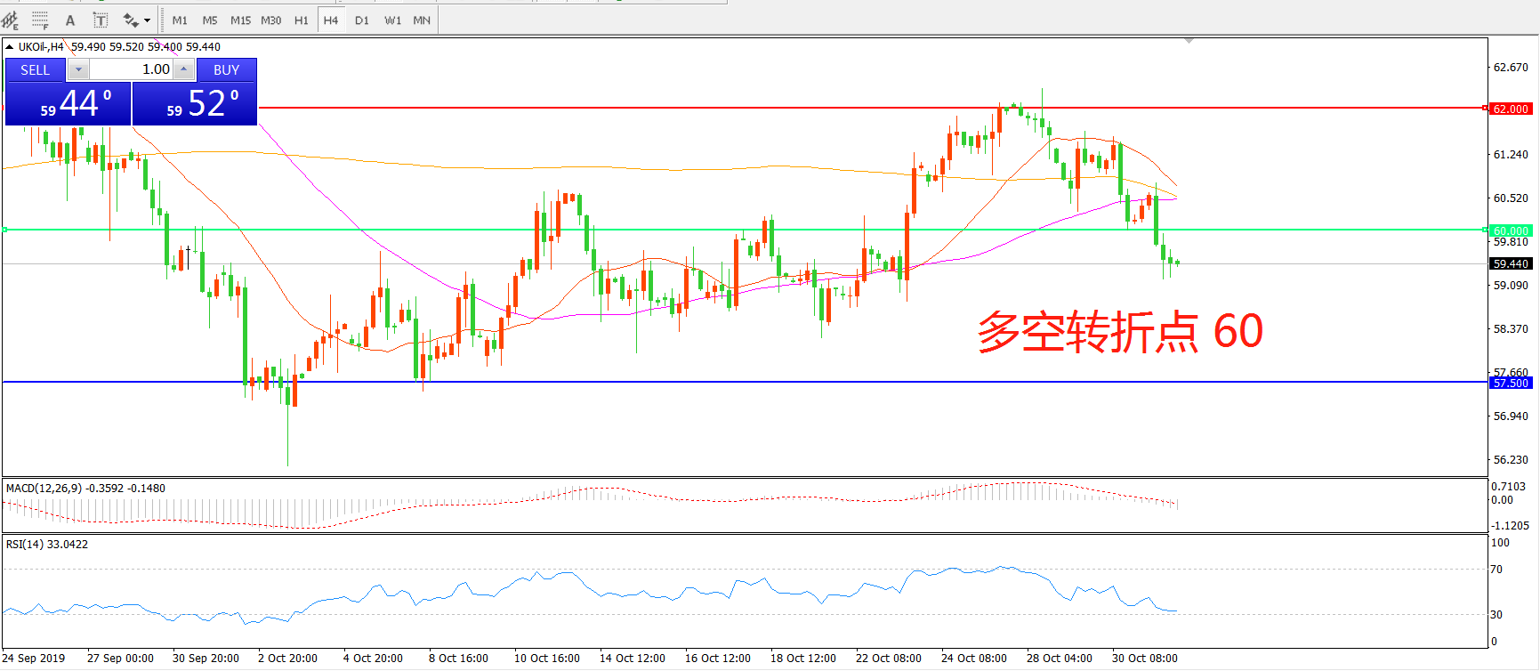 交易策略:在60.00之下看跌,目标57.50 55.50