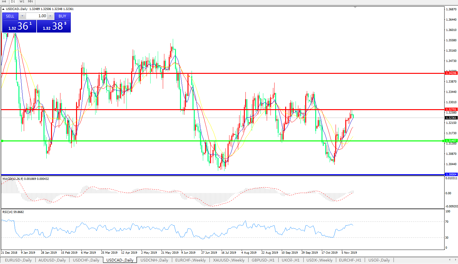 美元兑加元USDCAD    日线图: