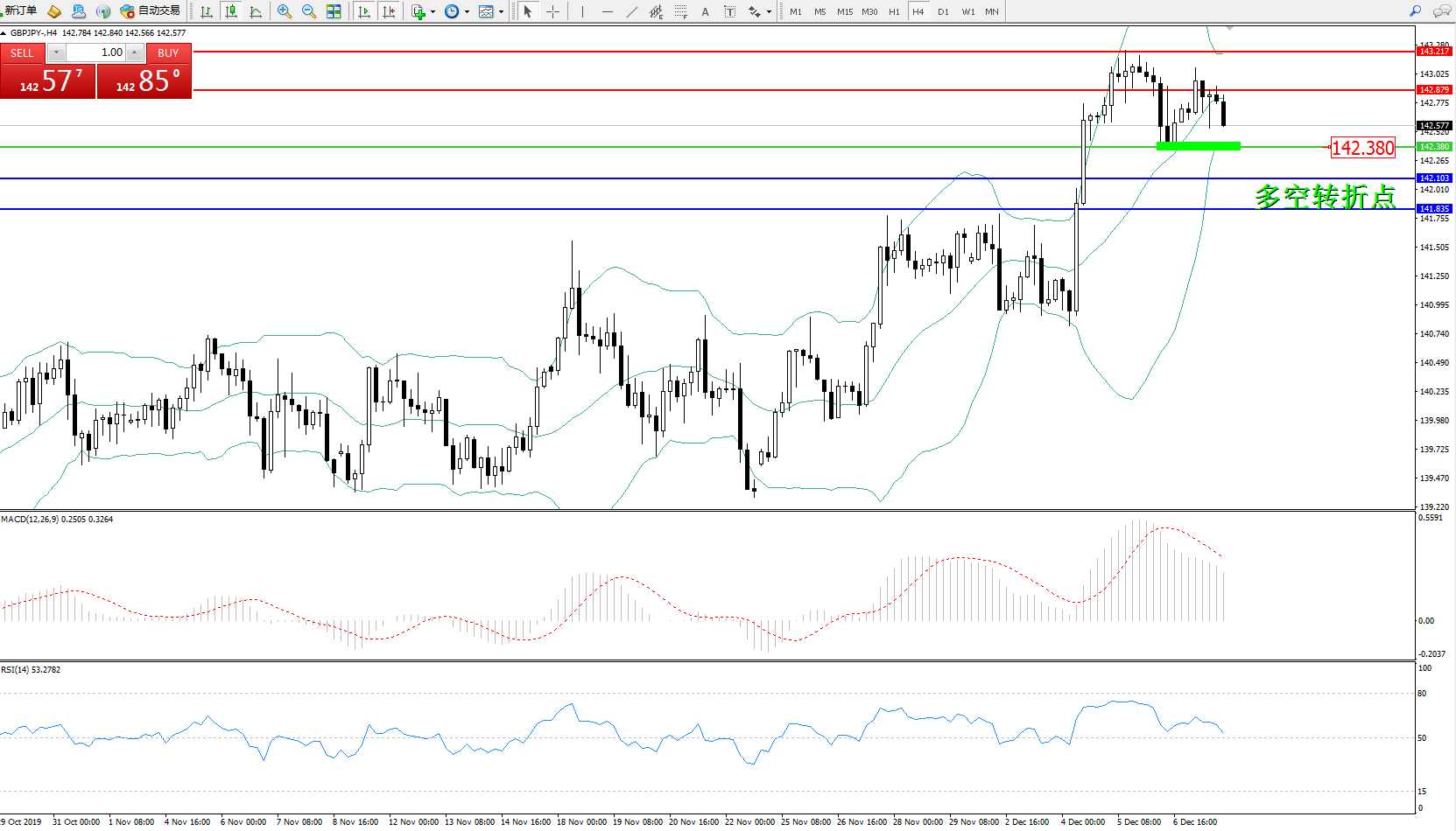 备选策略:142.380下方看跌,目标142.103、141.835