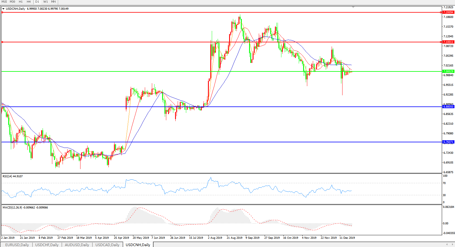 美元兑人民币USDCNH 日线图: