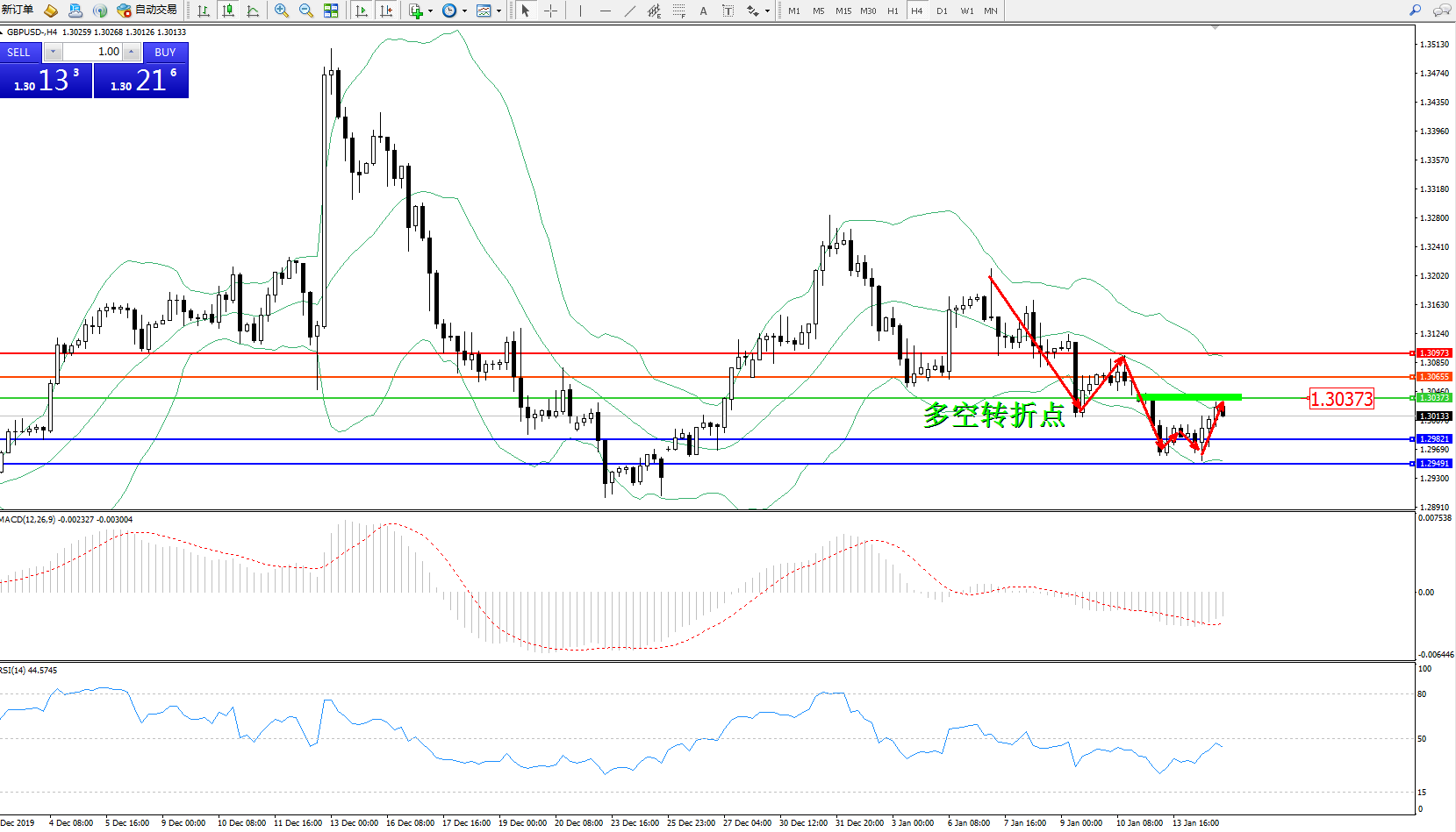 交易策略:1.30373下方看跌,目标1.29821、1.29491
