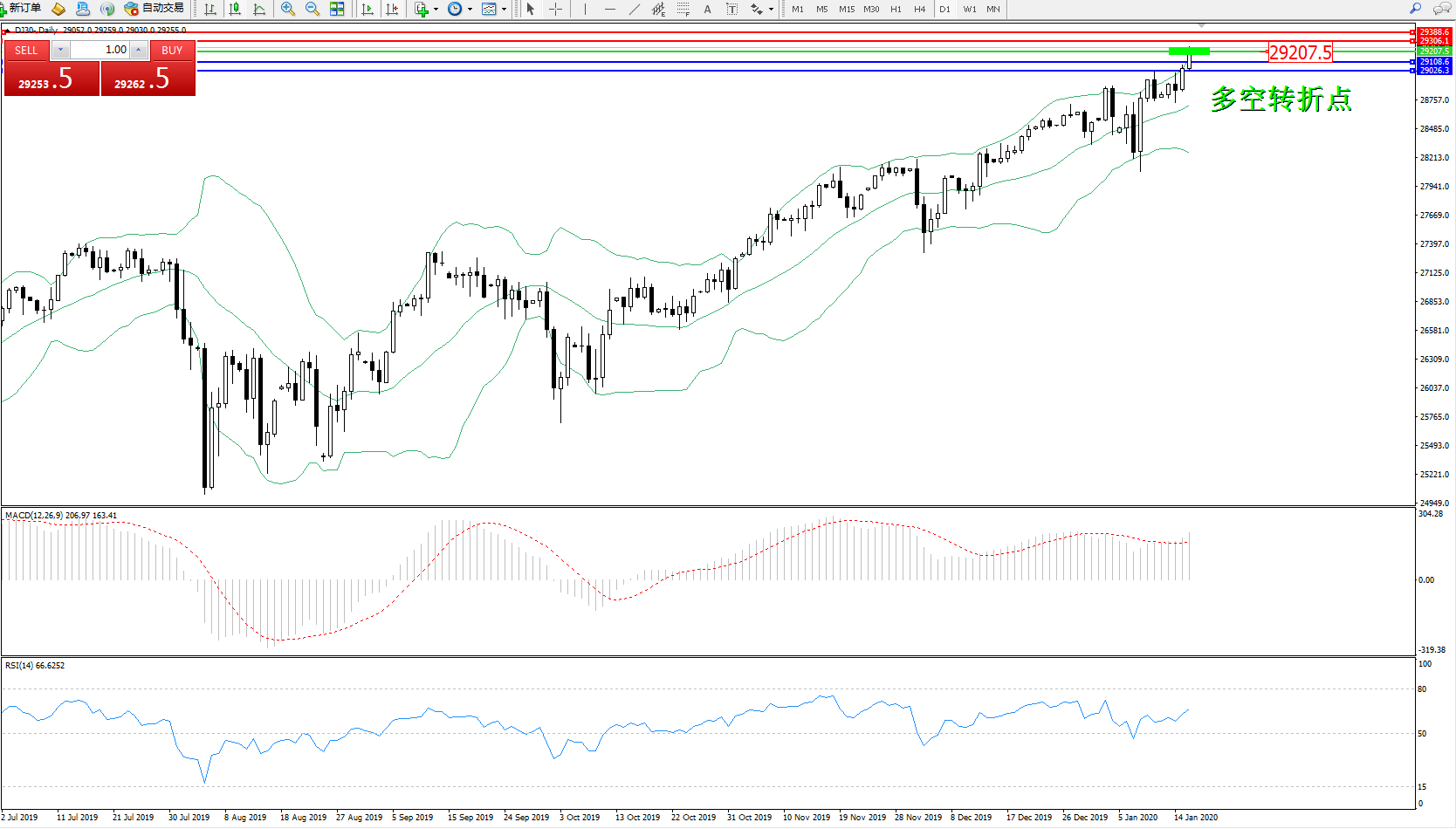 道琼斯指数116日(周四)收盘上涨267.30点,涨幅0.92%,报29297.57点。美国三大主要股指在本周稍早多次创下纪录之后,周四大涨至历史新高,科技股和金融股领涨;美中经贸协议周三签署以及美国消费者需求依然强劲的迹象,令屡创新高的美国股市涨势加速。消费者确实处于积极状态,当考虑美中紧张关系缓解的因素后,市场处于一个相当不错的位置。对许多投资者而言,全球最大两个经济体的第一阶段协议正式签署,意味着贸易摩擦缓解。如果这种局面持续的话,交易员将寻找新的催化剂,最有可能在经济数据和财报季中。