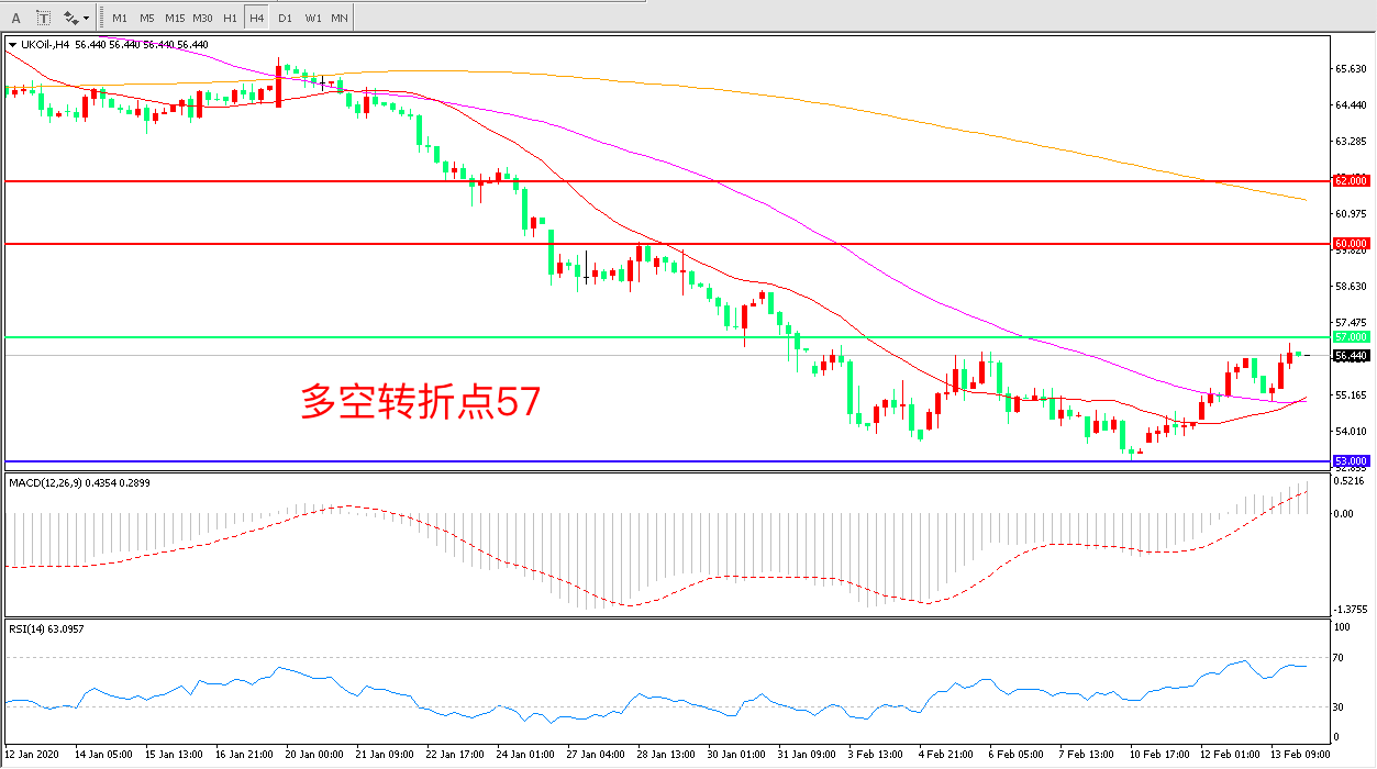 交易策略:在57.00之上看涨,目标60.00 62.00
