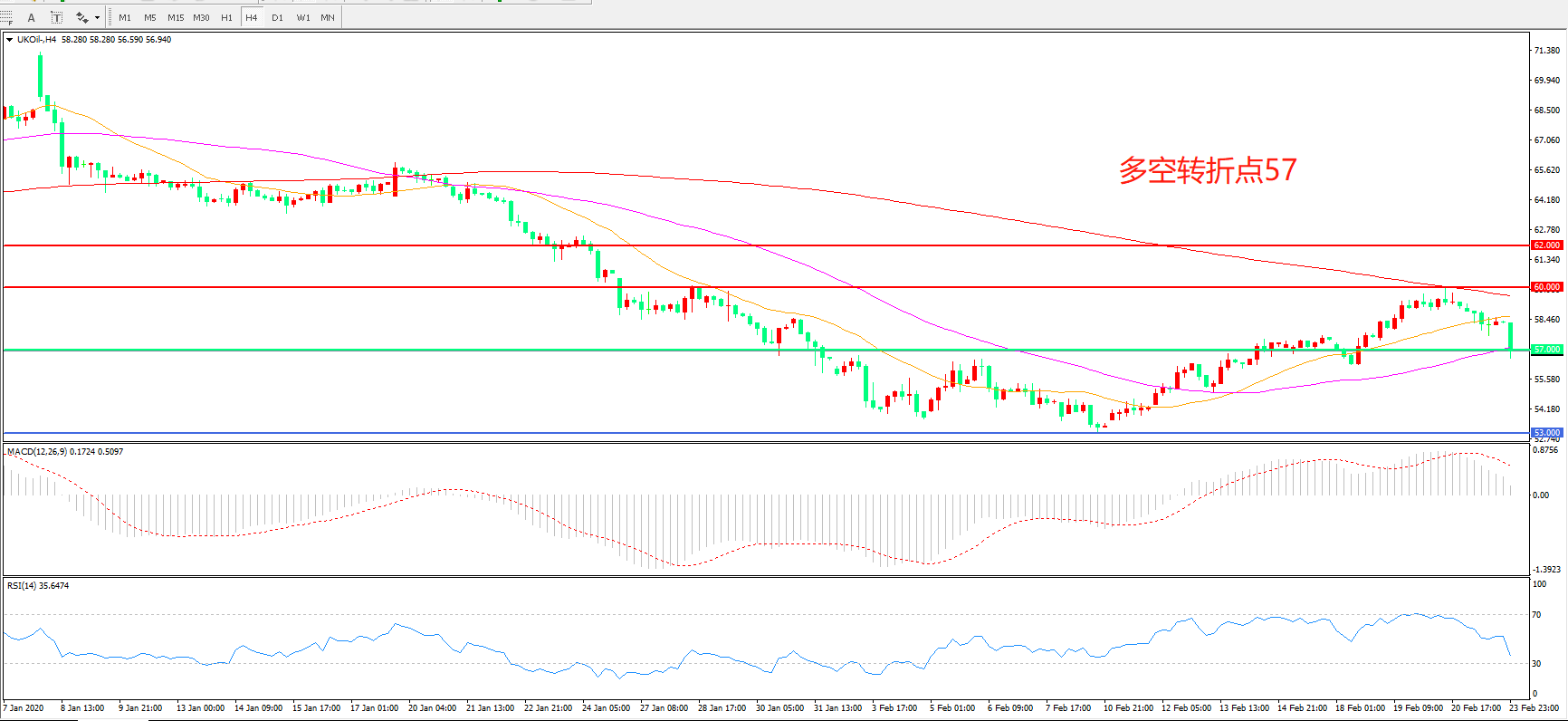 多空转折点:57.00