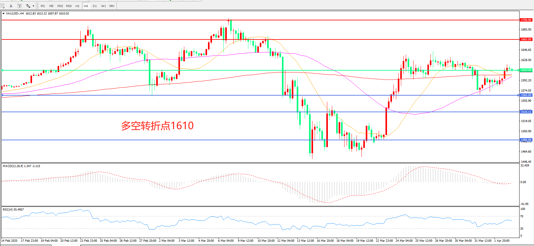 周四(4月2日),美国初请失业金人数连续第二周创纪录新高,加剧人们对新冠疫情造成经济损失的担忧,促使投资者转向避险的黄金。黄金在初请数据公布前的45分钟左右就开始逐渐扩大日内涨幅,累计上涨逾15美元,现货黄金最后收报1613.22美元/盎司。
